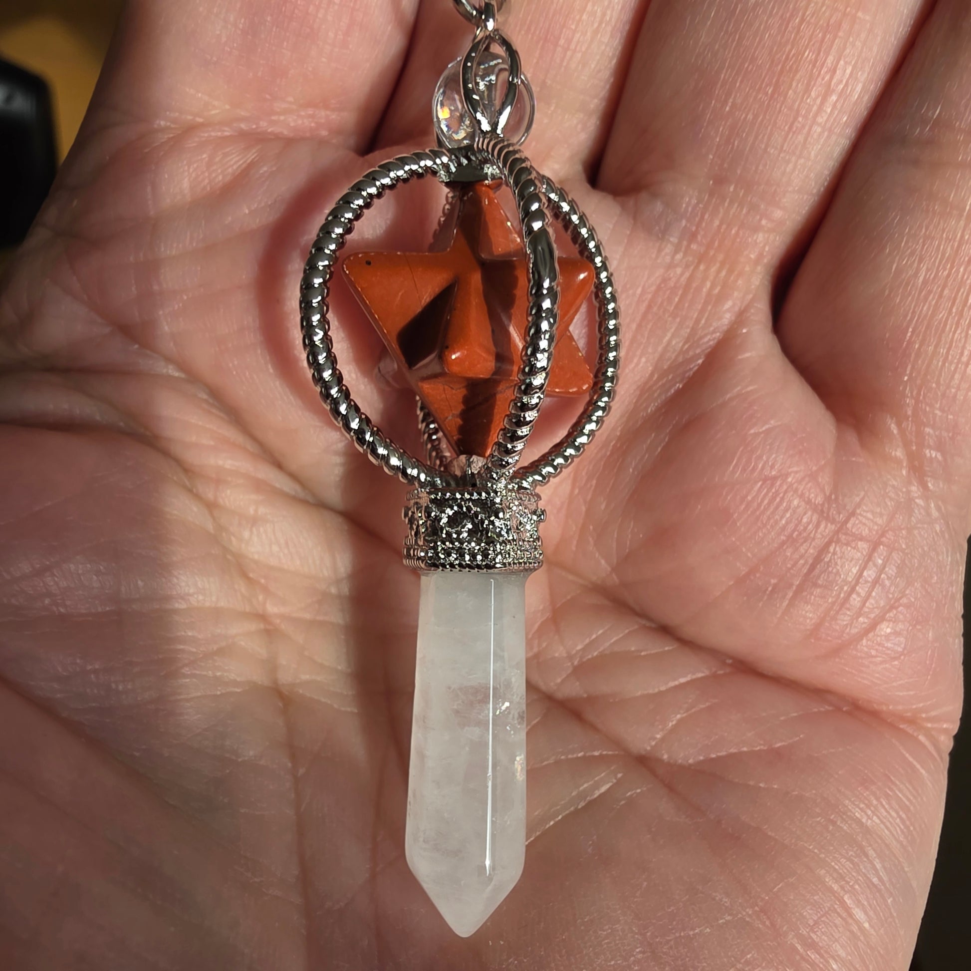 Jaspis Rød m bjergkrystal merkaba pendul