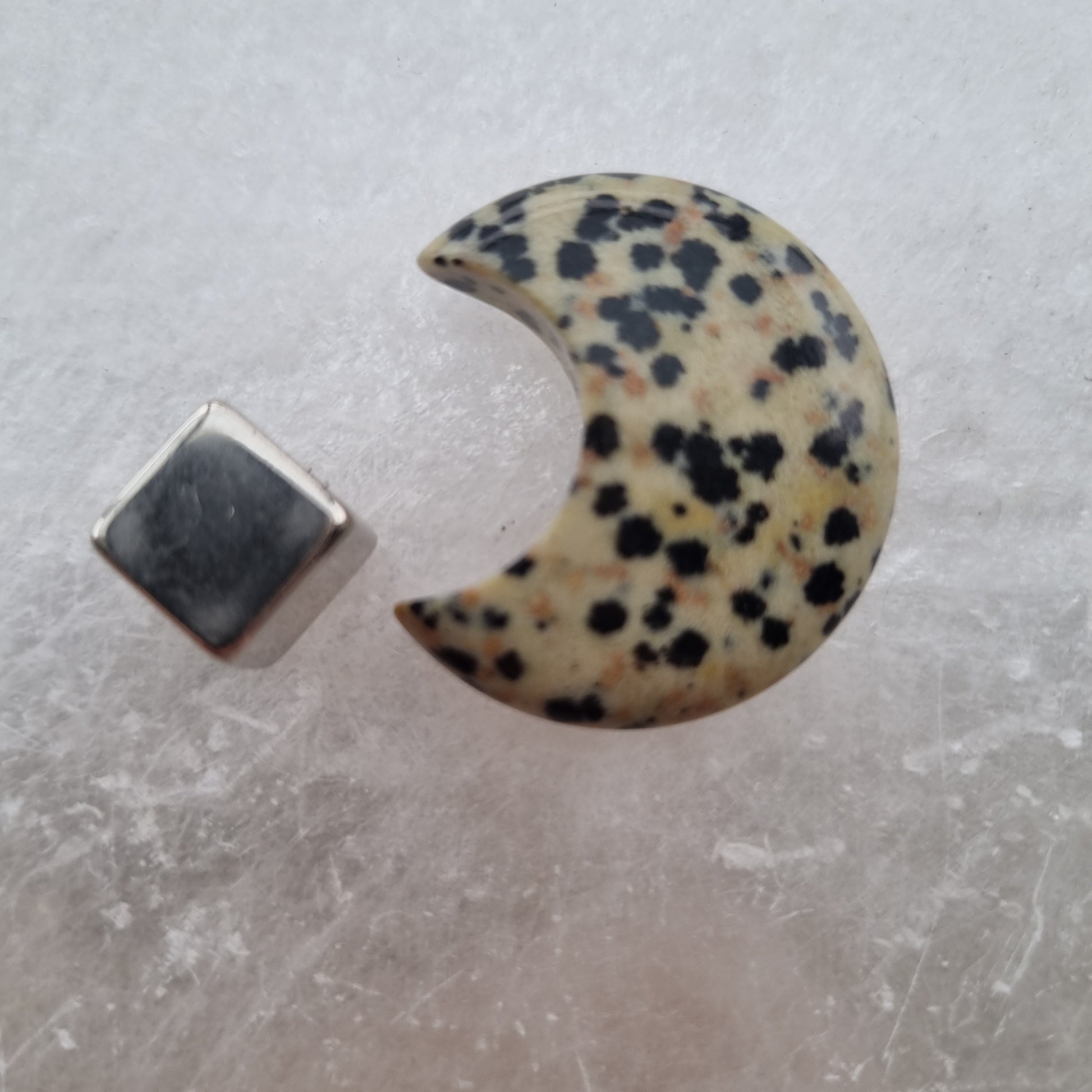 Jaspis Dalmatiner er en unik krystal med sine lyse farver og sorte pletter. Den består primært af kvarts og feldspat, med sort turmalin eller arfvedsonit som de mørke pletter.
