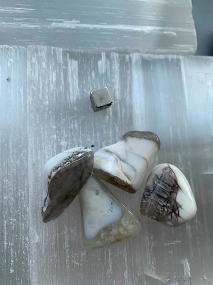 Opal styrker intuition og følelsesmæssig bevidsthed, og den åbner for kreativitet og inspiration. Den hjælper med at frigøre gamle mønstre, fremmer selvudfoldelse og bringer lys og klarhed ind i følelseslivet, samtidig med at den beskytter mod negative energier.