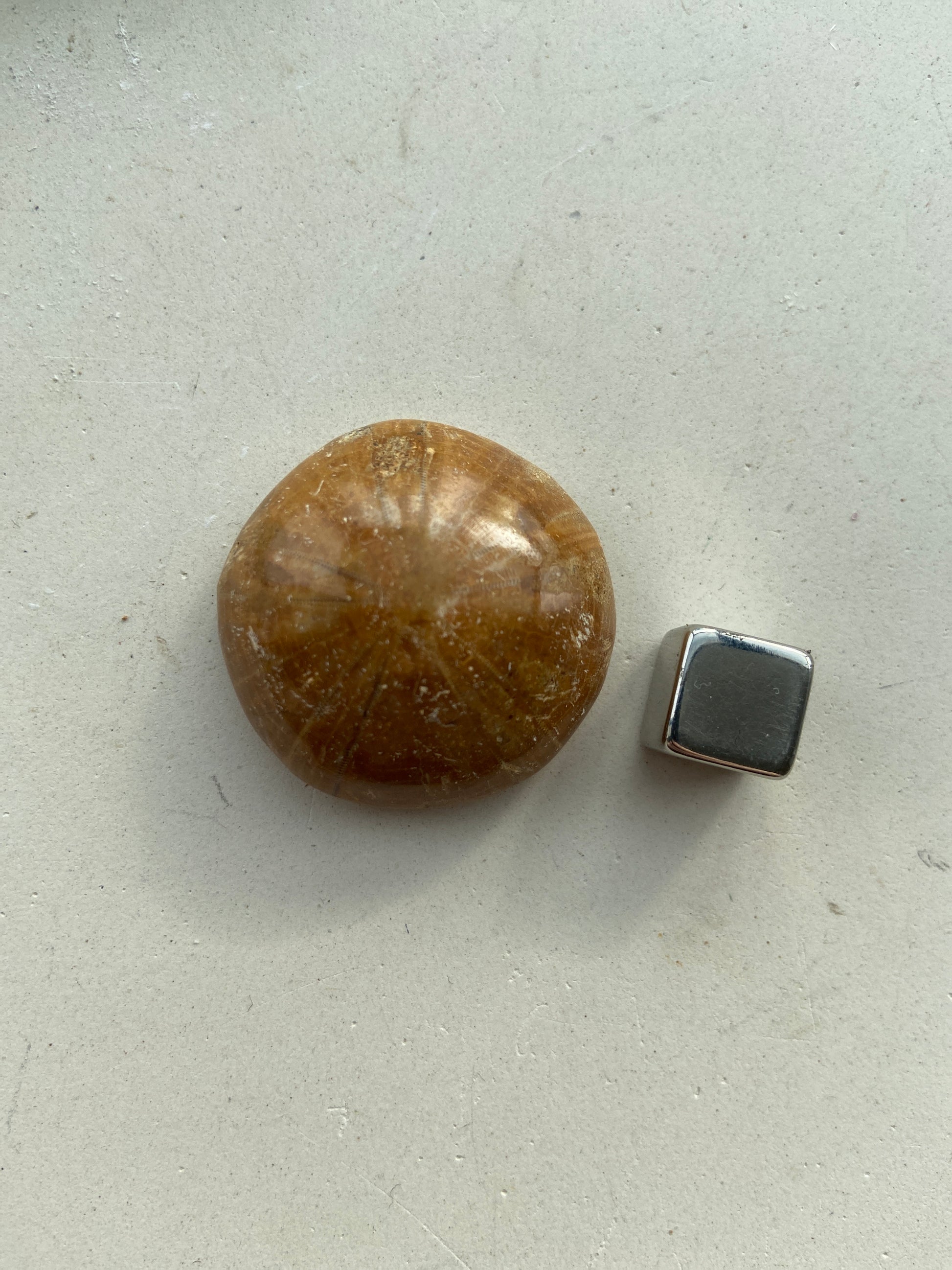 Sanddollar er et forstenet havdyr, som er mange millioner år gammelt og stammer fra Madagascar. Den er en powerfuld reminder om jordens begyndelse. Den består af en 5 armet stjerne. Numerologisk står 5 for vækst, udvikling, transformation og forandring. Den siges at indeholde jordens 5 elementer.