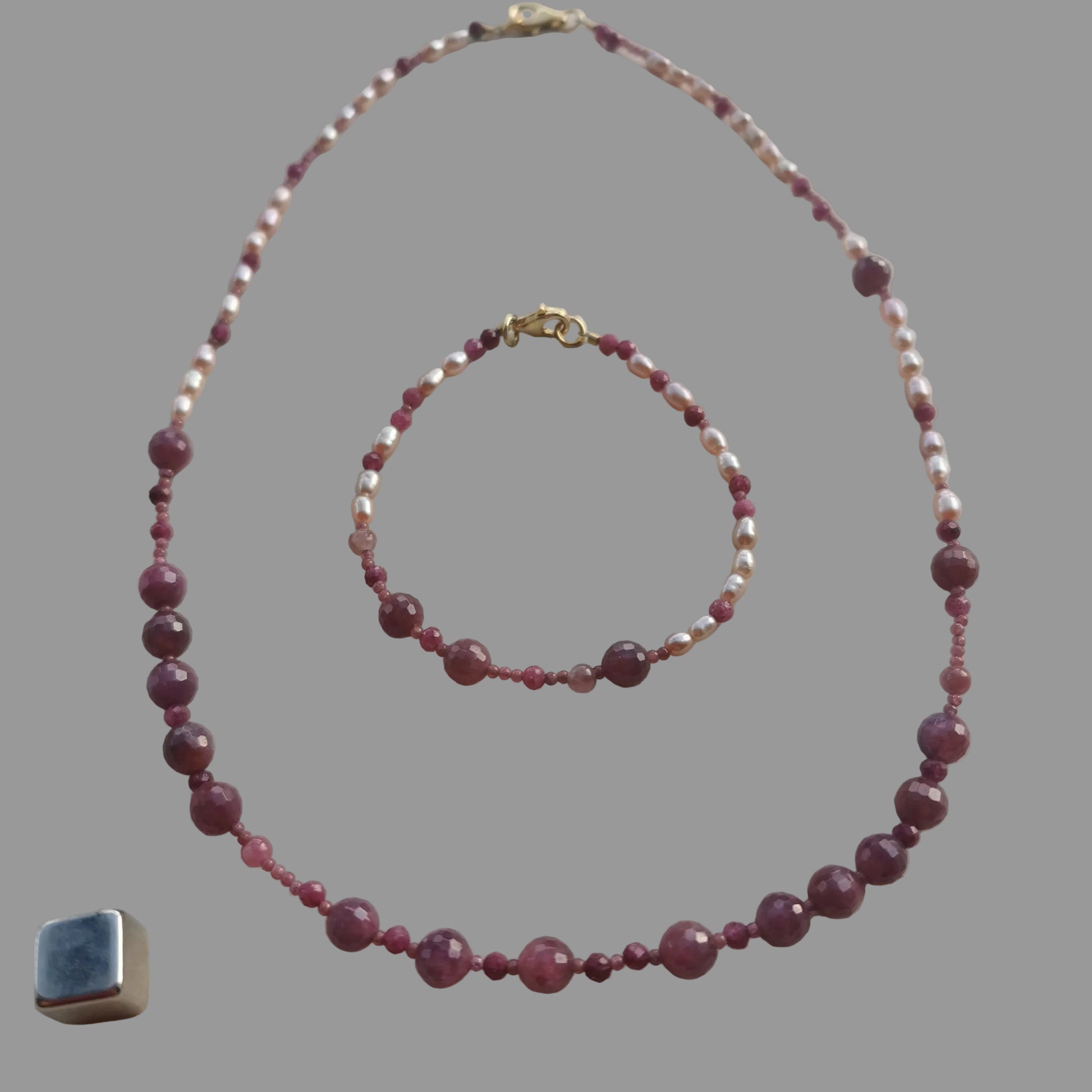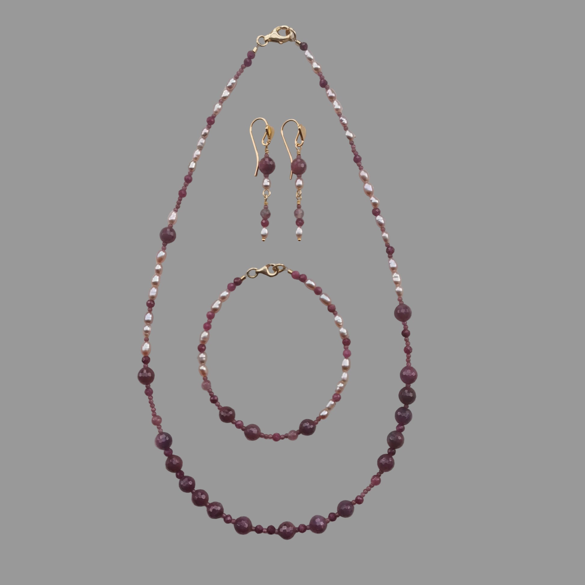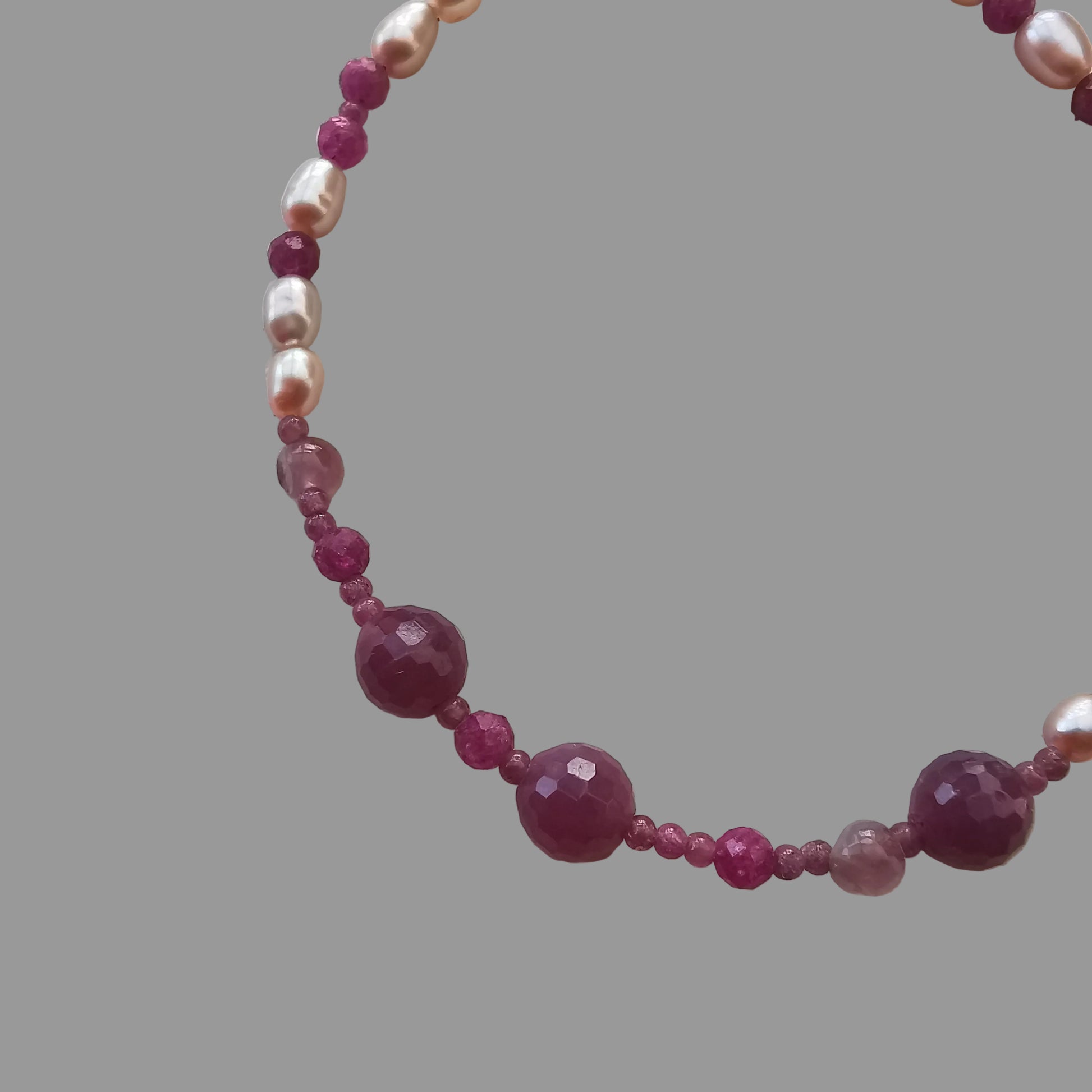 Armbånd m/Rubin, ferskvandsperle og Turmalin Pink