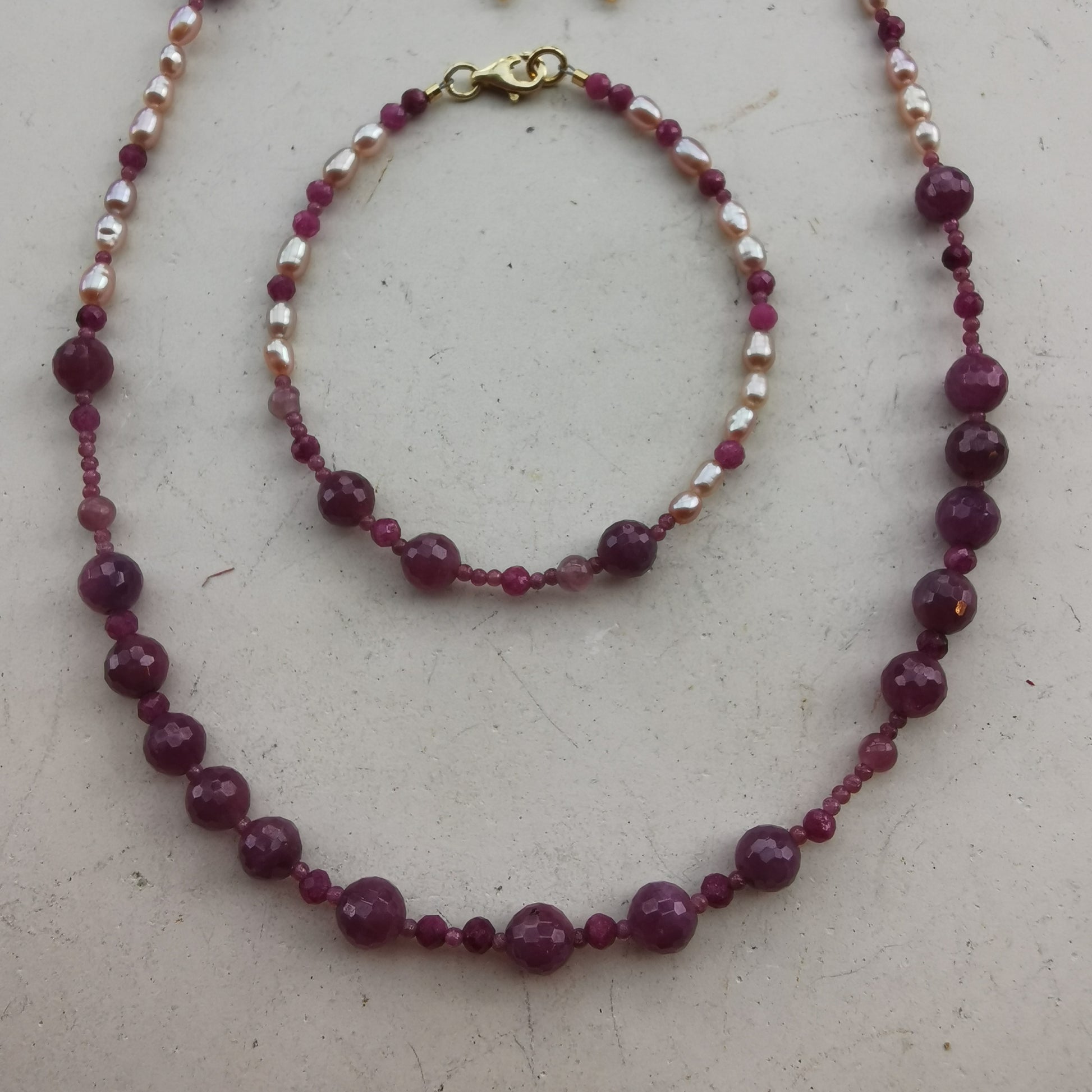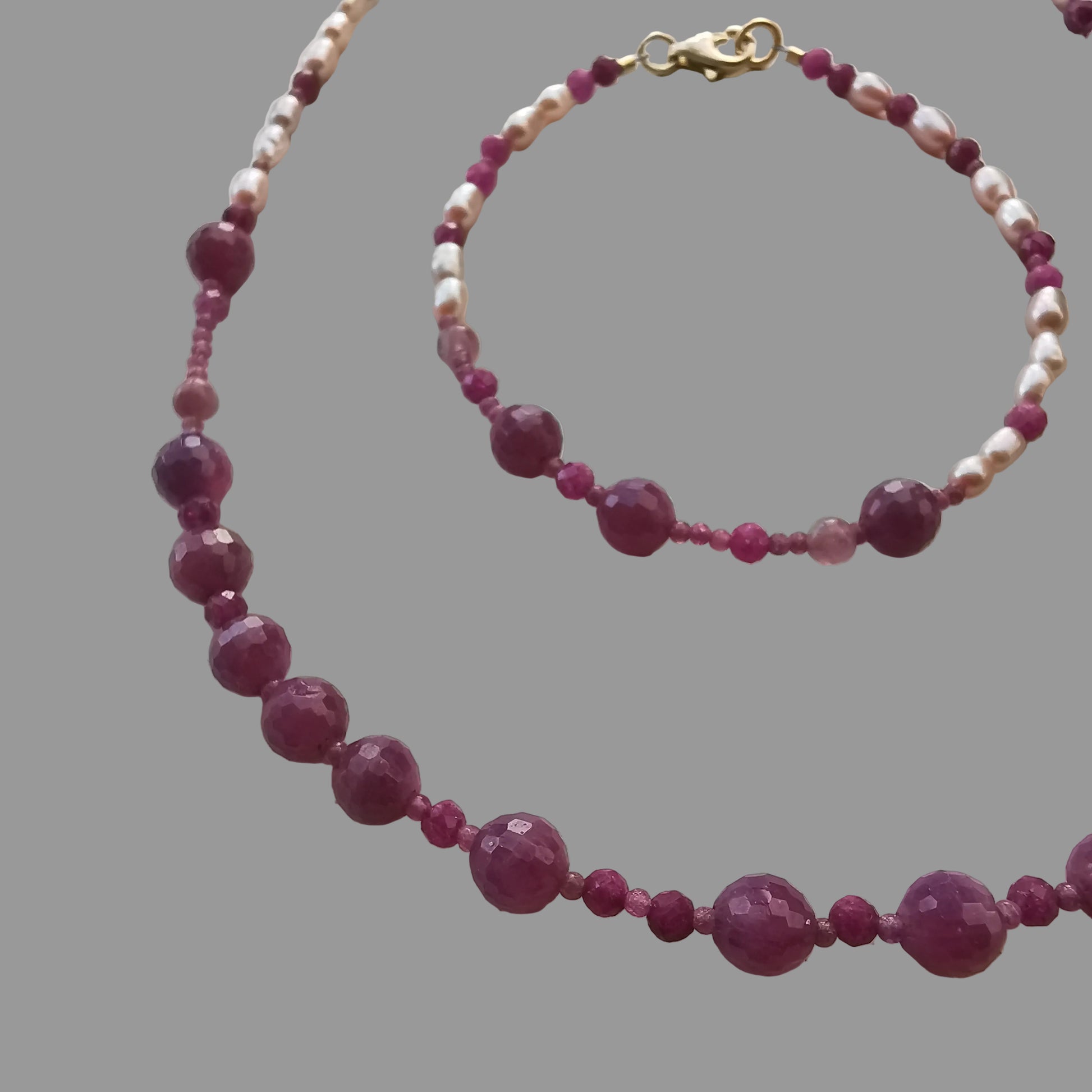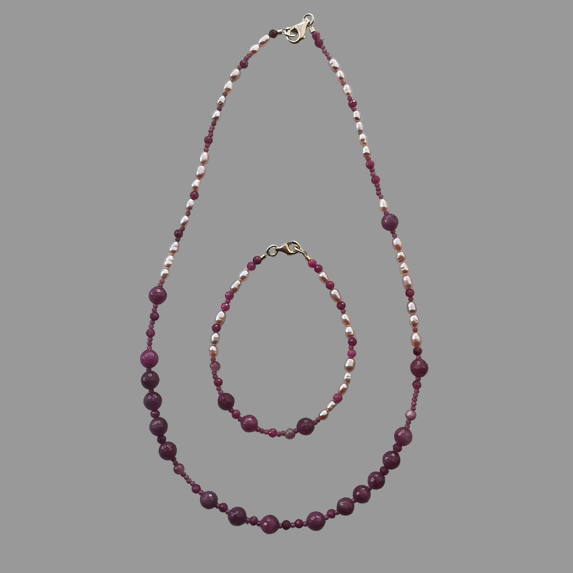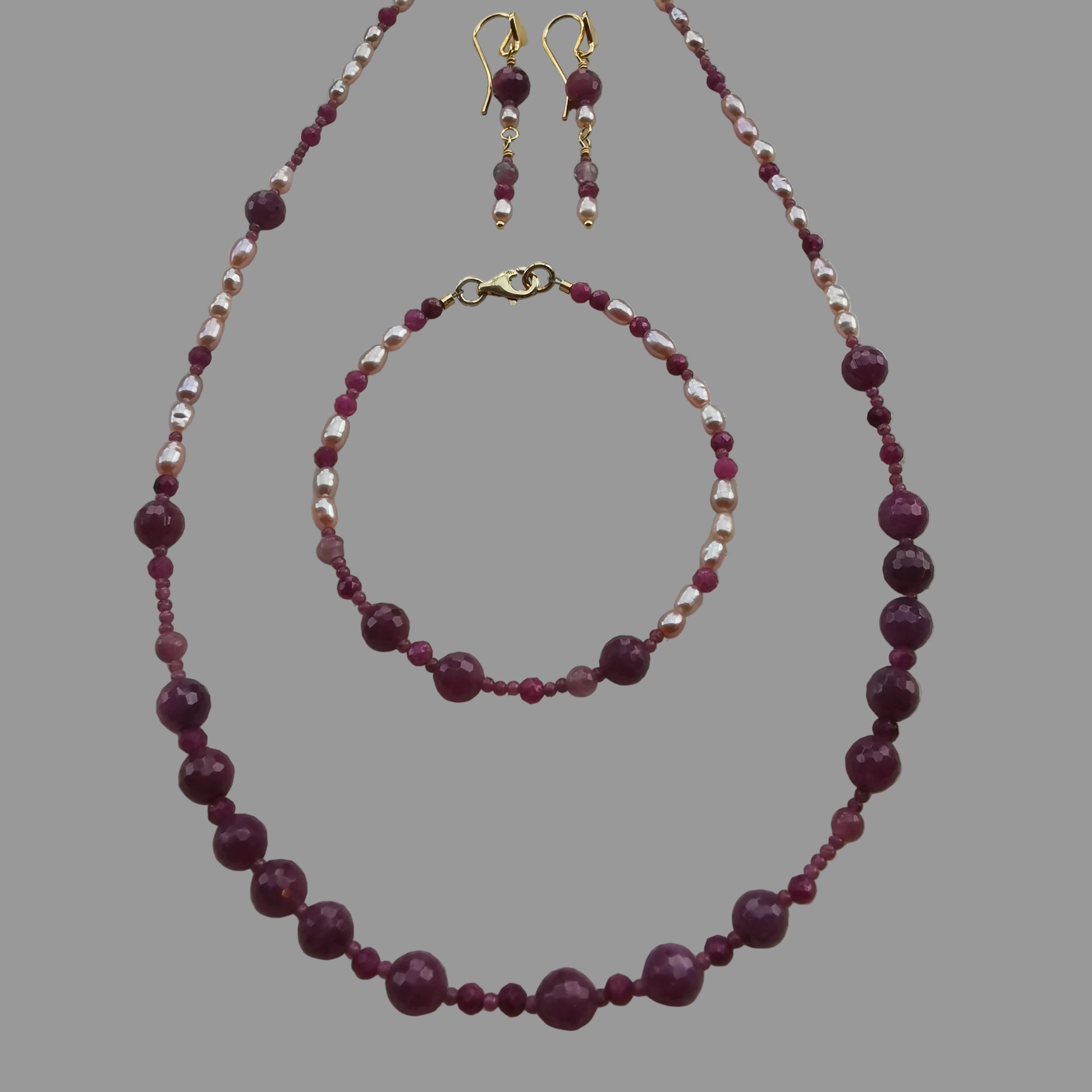 Armbånd m/Rubin, ferskvandsperle og Turmalin Pink