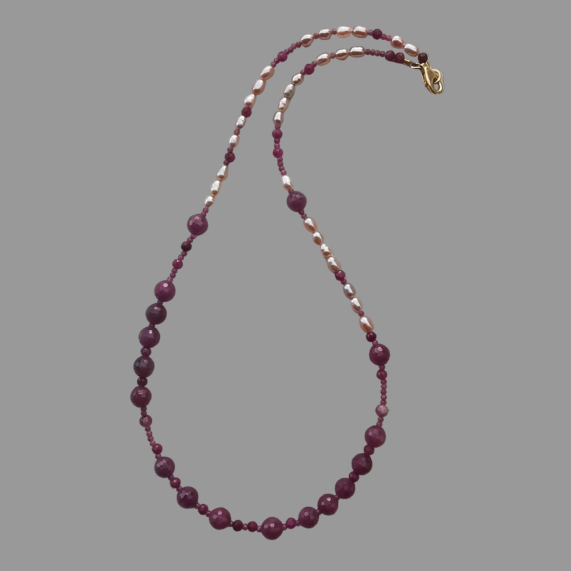 Halskæde m/Rubin Ferskvandsperle og Turmalin Pink