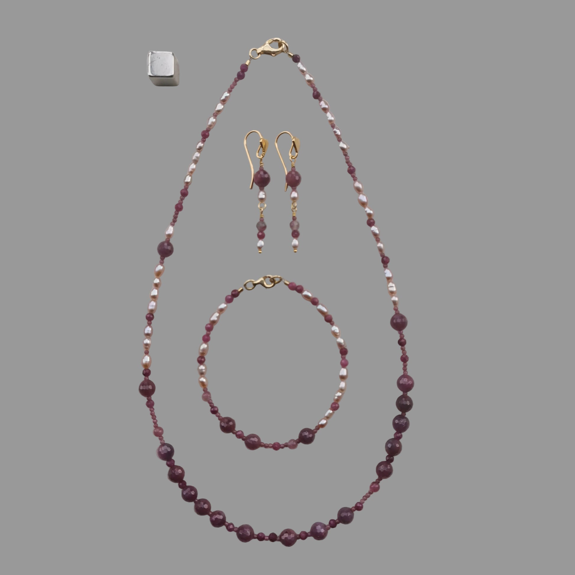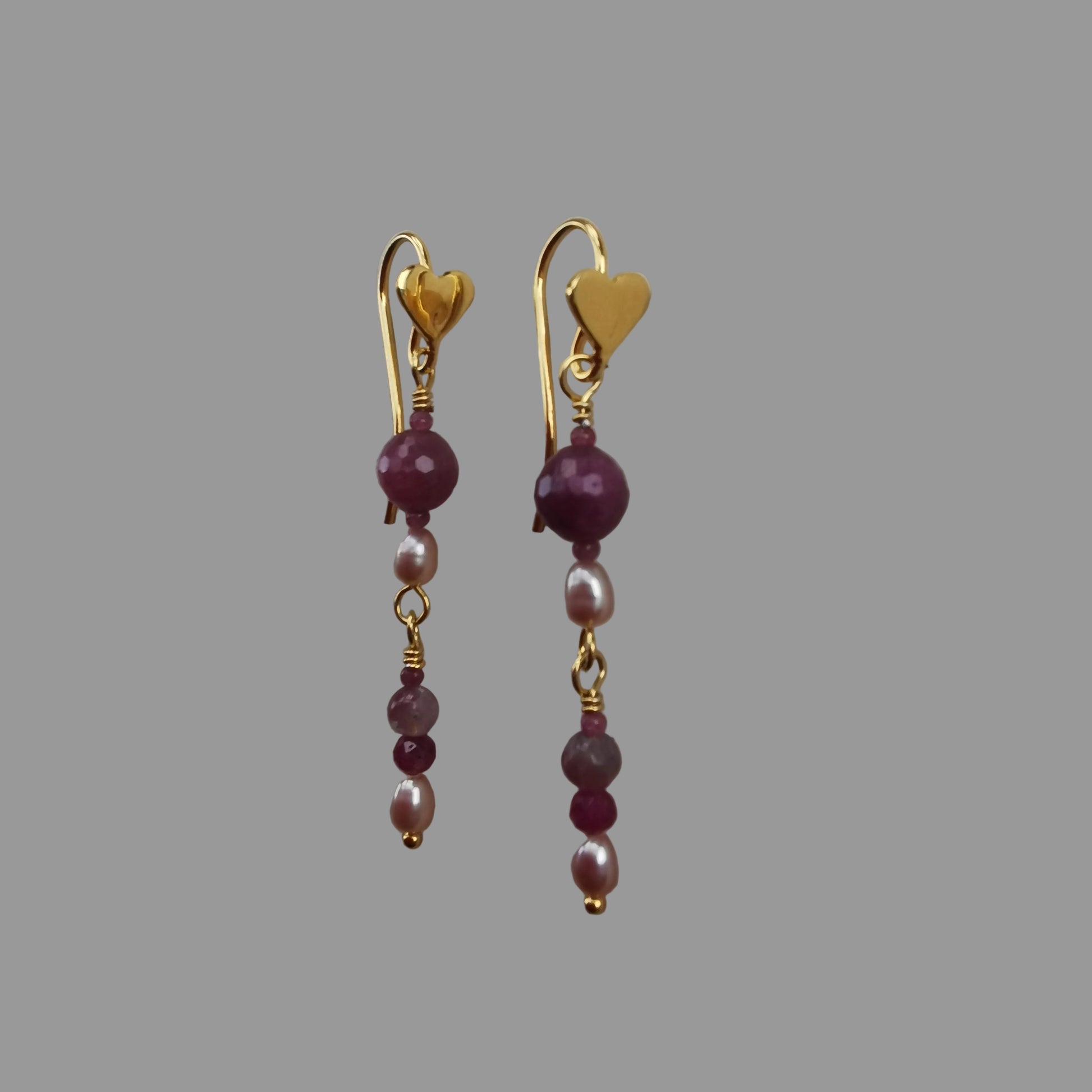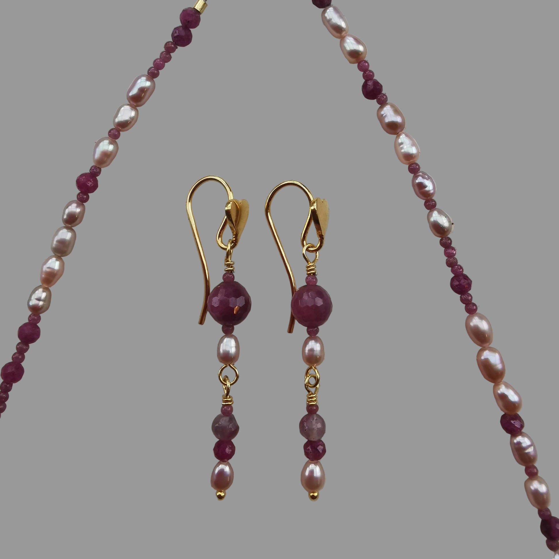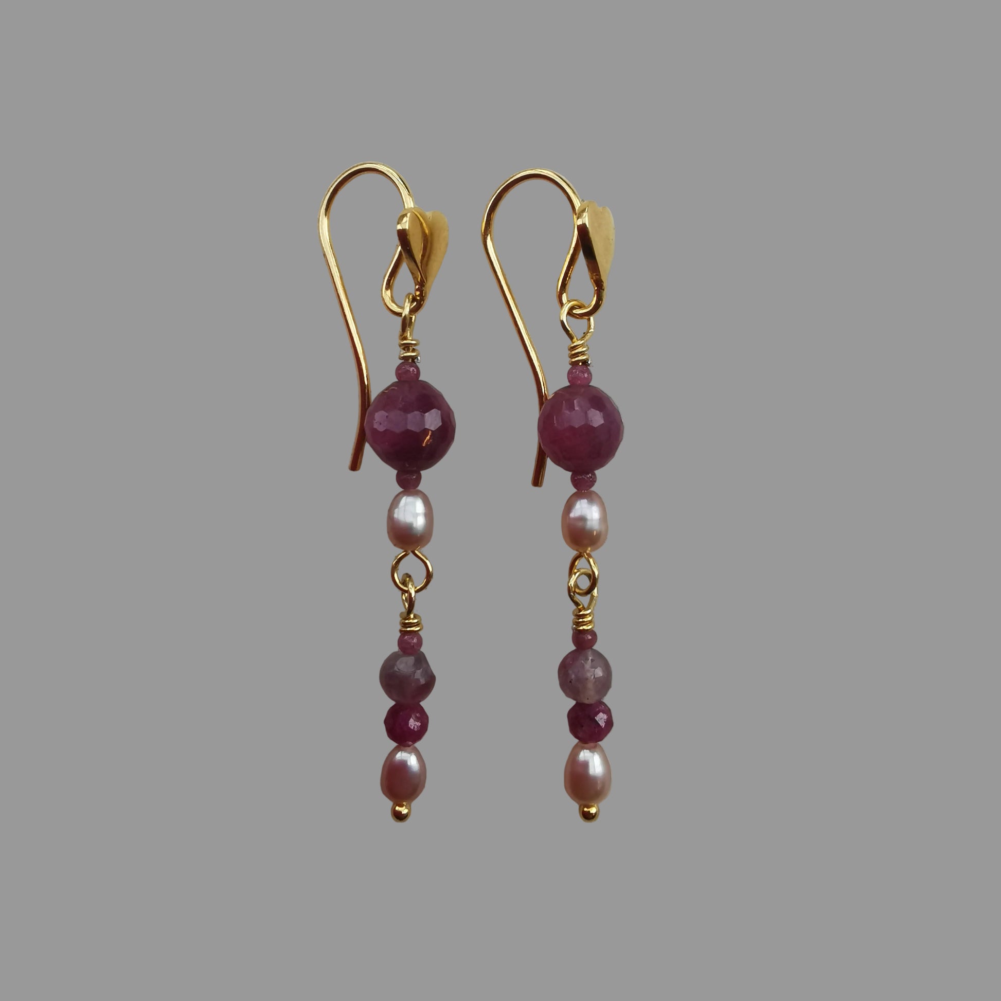 Øreringe m/Rubin, Ferskvandsperle og Turmalin Pink
