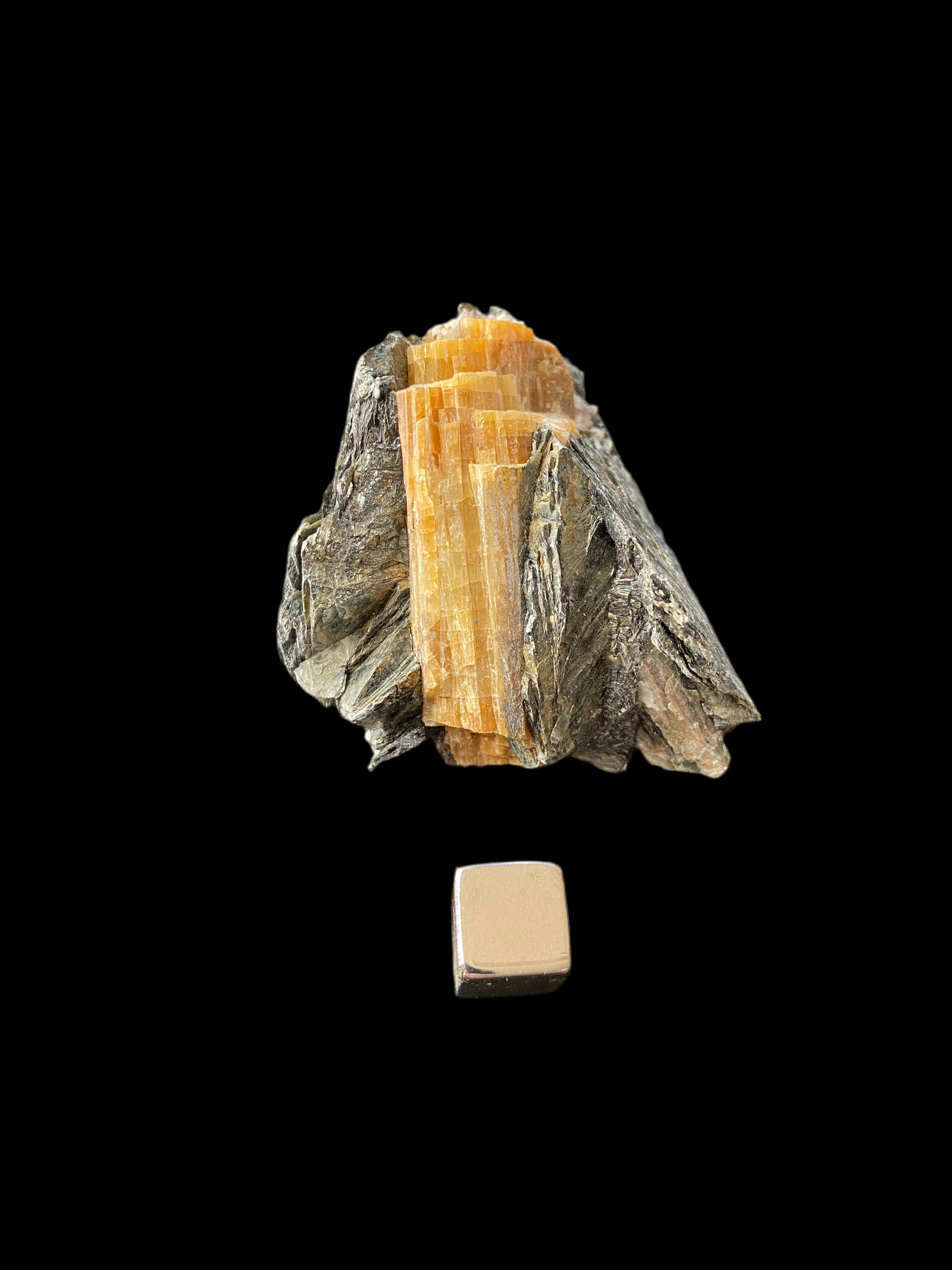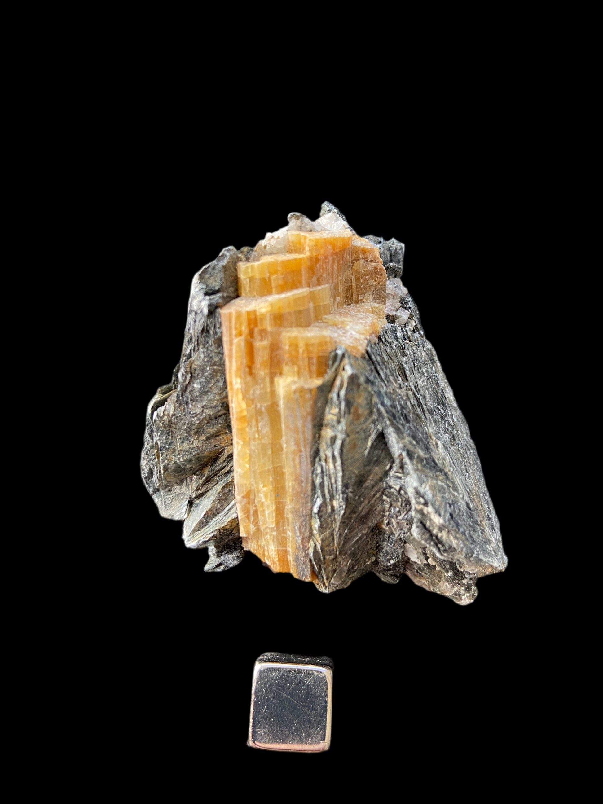 Turmalin mica skaber stabilitet og indre ro. Terningen måler 1x1 cm.